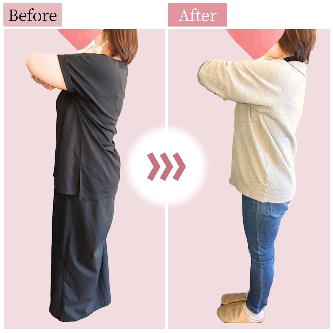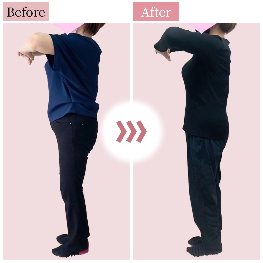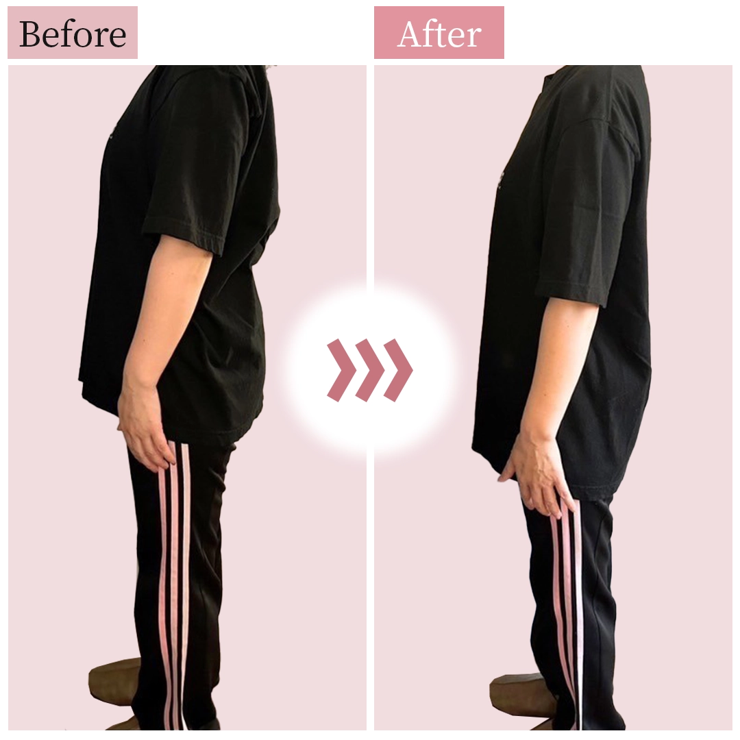 姿勢が改善されると、体内の血流がよくなり、基礎代謝が向上します。また、骨格の歪みを整えることで、身体が正しい位置に安定し筋肉のバランスが改善されます。