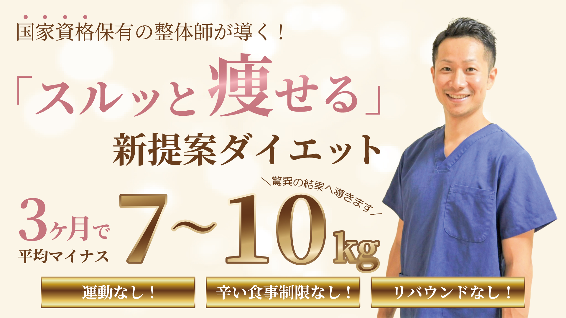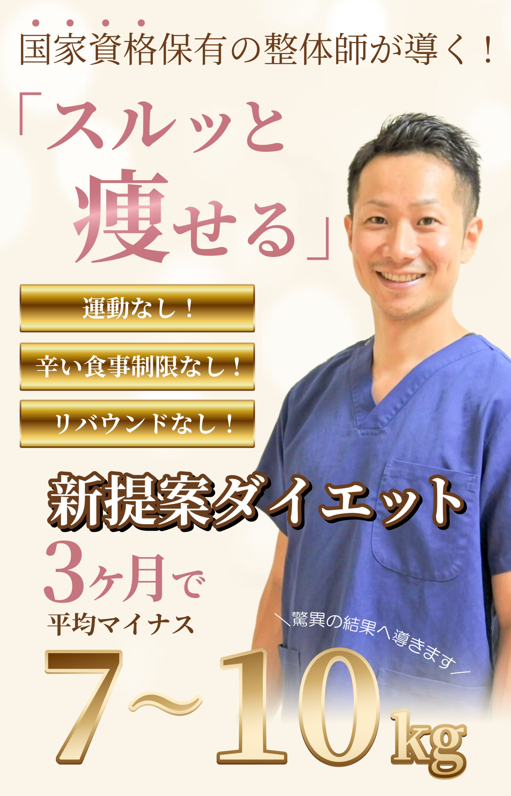 骨格バランスと生活習慣の両面から体を変えていくので、リバウンド率も低く、特に失敗し続けてきた方に強くおすすめできるダイエット方法です。悩まれている方は是非頼ってみてください。国家資格も多数お持ちでとても勉強熱心な方なので、安心しておすすめ致します。